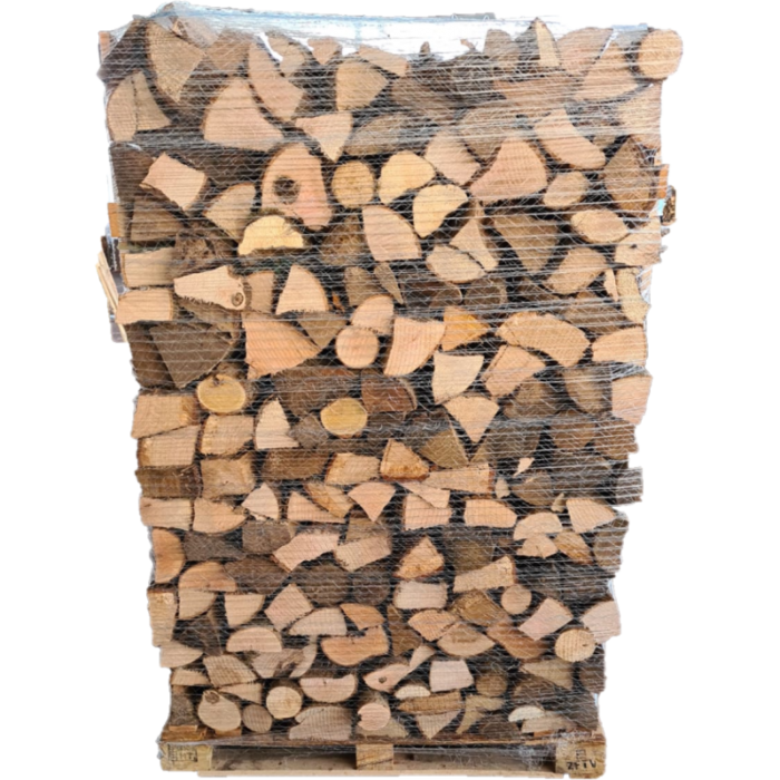 Nuestra leña seca de 30 cm está envasada sobre pallets y ocupa un volumen de 2m3 que representan 3 estéreos.